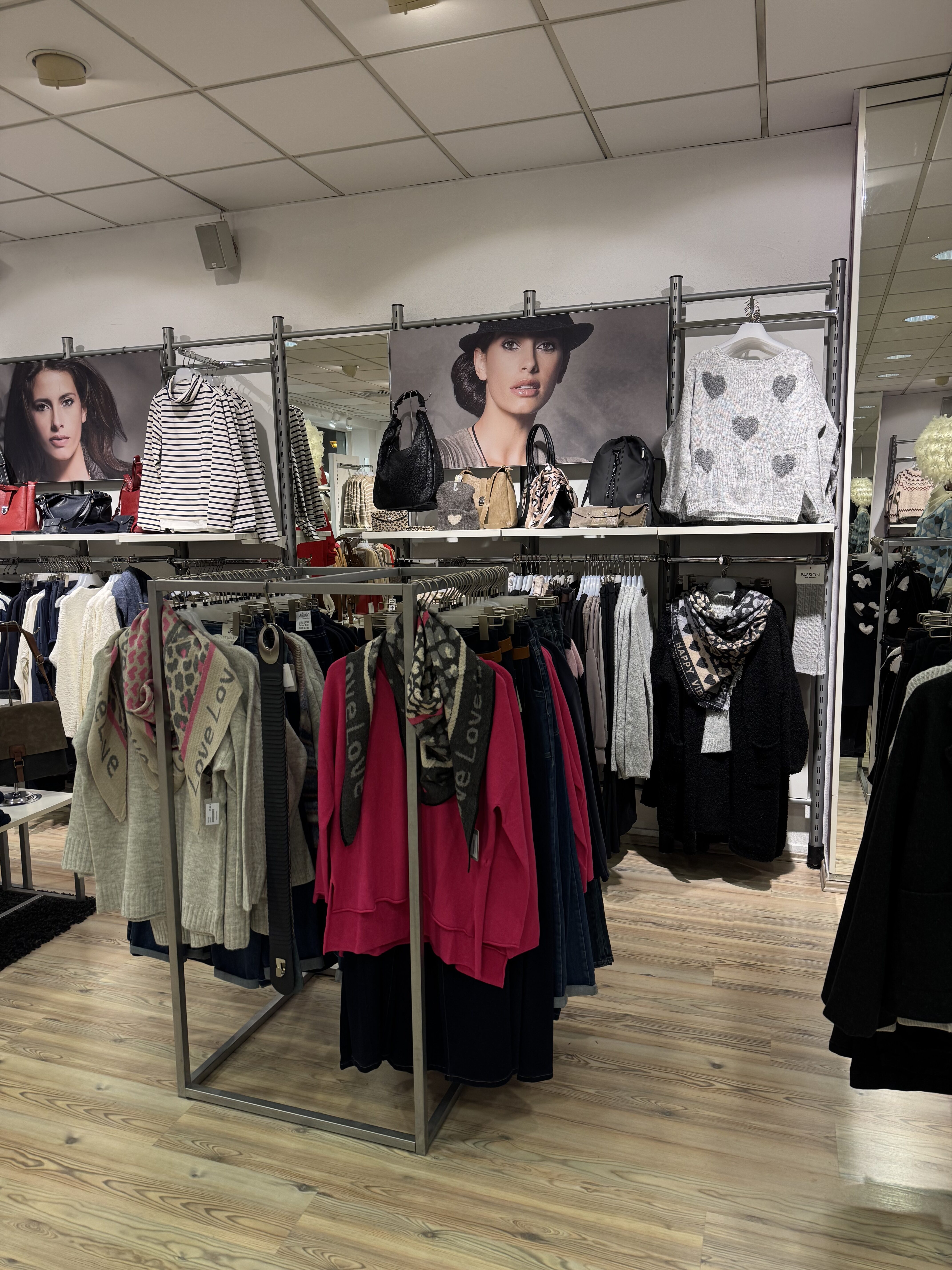 Bei uns finden Sie vom schwarzen Basic T-Shirt über ausgefallenen Stoffhosen bis hin zu einem Oversized-Mantel und der „Curvy Kollektion“ bis Größe 52 alles, was Ihr Modeherz begehrt. Zusätzlich finden Sie noch eine breite Palette an Accessoires wie Taschen, Gürtel, Schals oder auch Schmuck in unserem Modegeschäft, die Ihren Look vervollständigen.